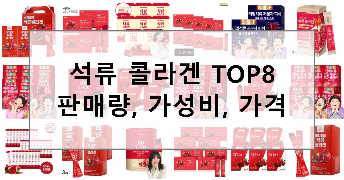 2024 기준 석류 콜라겐 구매를 고민하시는 분들에게 도움을 드리기 위해 자체 적으로 평점을 매기고 TOP8 제품을 소개해 드리겠습니다.