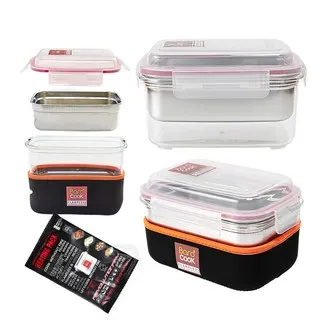 바로쿡 발열도시락 비화식 발열 용기 백패킹 반합 도시락 +발열팩 850ml, 1세트