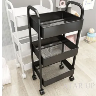 STAR UP 이동식 트롤리 튼튼한 선반 철제, 블랙, 3단