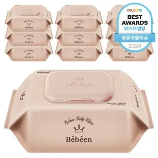베베앙 오리지널 플러스 영유아물티슈 캡형, 55g, 100매, 10개