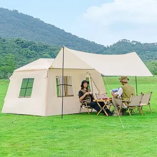 에어텐트는 감성캠핑을 더욱 특별하게 만들어줍니다. 설치 간편성과 공간 활용성이 우수하며, 아이보리와 브라운의 조화로운 디자인이 자연 속에서 눈에 띕니다. 내부 공간은 넉넉하고 통풍이 잘 되어 편안한 캠핑을 보장합니다. 다소 높은 무게가 단점이지만 차량 캠핑을 즐기는 분들에게 추천합니다.경량 에어텐트 4-8인용 타프 일체형 탈부착 대형 글램핑 텐트, 연베이지260*220*160cm