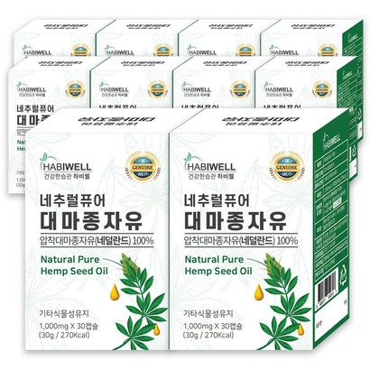 7위. 하비웰 네추럴퓨어 유기농 대마종자유 1000mg X 30캡슐, 30정, 10개 | 대마종자유