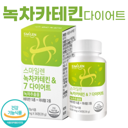 9위. 스마일렌 녹차 카테킨 7 다이어트 인도산 녹차 추출물 체지방 감소 혈중 콜레스테롤 감소 도움, 1개, 56정 | 카테킨 영양제