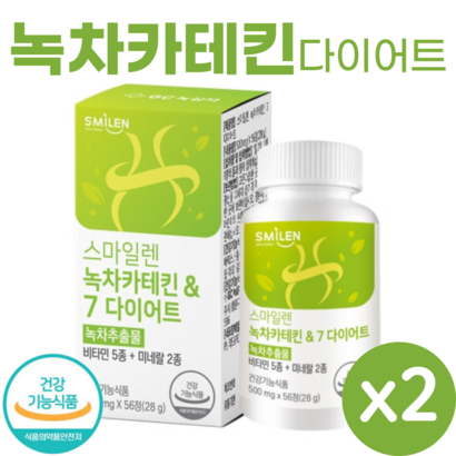 6위. 스마일렌 녹차 카테킨 7 다이어트 인도산 녹차 추출물 체지방 감소 혈중 콜레스테롤 감소 도움, 2개, 56정 | 카테킨 영양제
